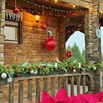 Ranc cokoriから1.2km離れた所離れたところにあるベッドルーム3室のCozy Wooden Cottage バニャ・ルカには、庭園の景色を望むテラスがあります。